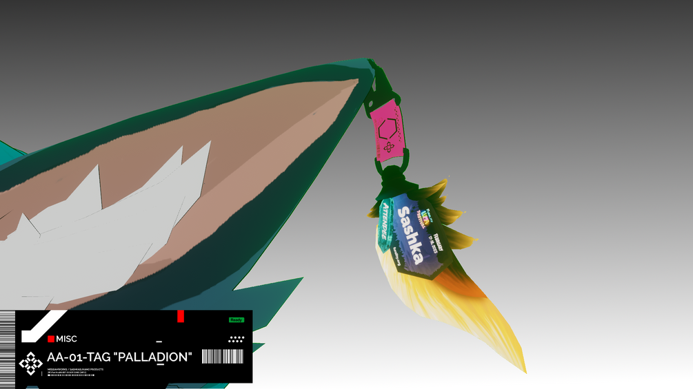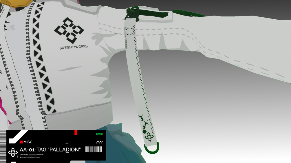 PALLADION comes in 3 lengths, from a short square length to a long, nearly 3 feet long version. They can be attached to anywhere on your armature with a bone, easily customized to display your own name, or brand, or QR codes and links for others to find you easily out of VRC.